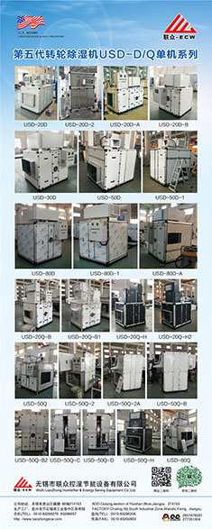 無錫市聯眾控濕節能設備有限公司成立于2004年2月,是一家長期致力于把空氣吸附分離技術應用于空氣處理設備的科技型中外合作 企業,主要研發生產轉輪除濕機組、熱泵除濕機組、空氣與空氣熱 能交換回收機組、蒸發冷卻空調機組、有機廢氣凈化處理機組等非 標空氣處理設備。隨著生產規模的不斷壯大和產業化的精細分工, 聯眾公司與2011年10月在江蘇省宜興市萬石鎮工業園茶亭路8號, 一期投資5000萬元,置地25畝、建標準工業廠房10000平方米和辦 公樓3000平方米,重新注冊成立江蘇聯眾聯勝節能設備有限公司。 企業領導層決定確立江蘇聯眾聯勝公司以研發生產蒸發冷卻空調機 組、有機廢氣凈化處理機組等大型節能環保空氣處理設備為主;而無錫聯眾控濕公司則在無錫繼續以研發生產轉輪除濕機組、熱泵除濕機組、空氣與空氣熱交器為主。在國內暖通空調工程領域,聯眾控濕公司研發各類轉輪除濕機的技術能力、生產各類轉輪除濕機的 裝備制造工藝水平處于本行業前沿。